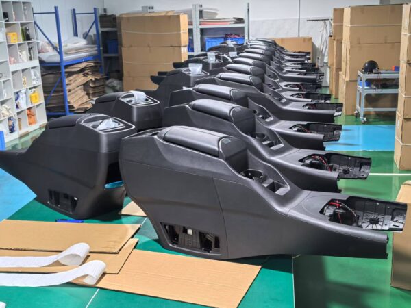 Central opening on both sides, with cup holders at the front and back, incl. mounting material and covers for the armrests, which are removed during installation.